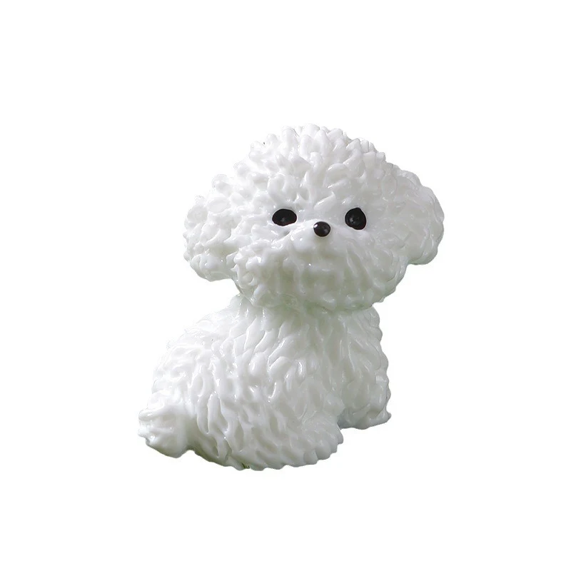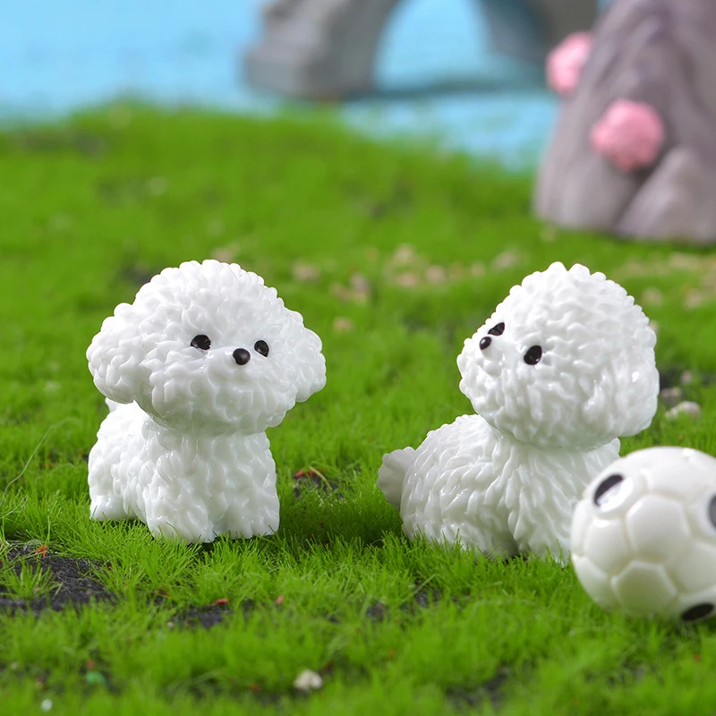 Miniatures Figurines Cute Dog White Bichon Frise Micro Landscape Ornaments For Home Decorations Room Car Desk Accessories Crafts